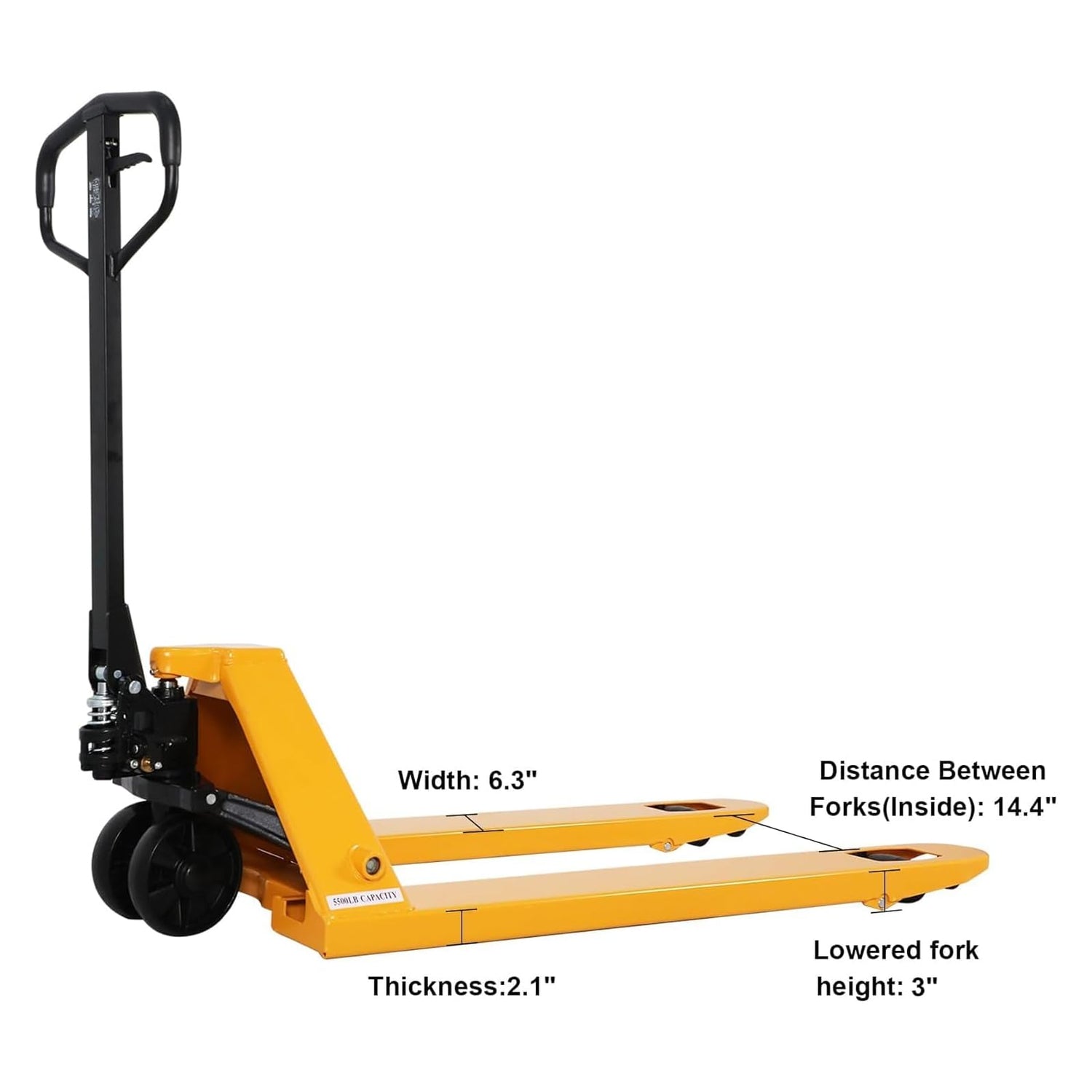 Hand Pallet Jack| 5500 lb| 48"x27" Forks| PU or Nylon Wheels
