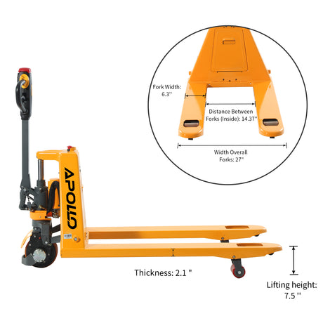 Li-ion Powered Pallet Truck| 3300 lb| 48"x27" Forks| Bulk Free Delivery| Apollolift A-1034