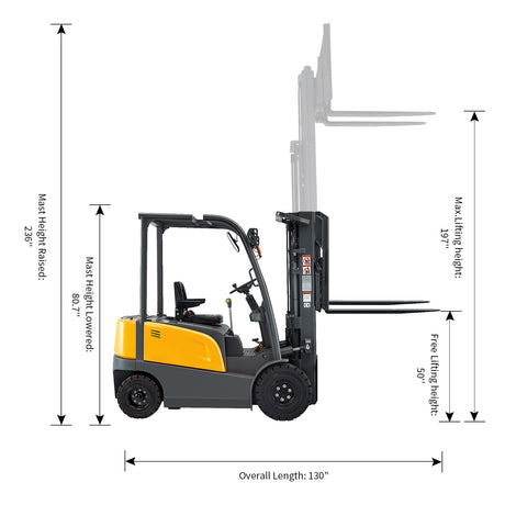 Lithium Battery 4-wheel Electric Forklift 5500lbs Cap. 197" Lifting A-4001