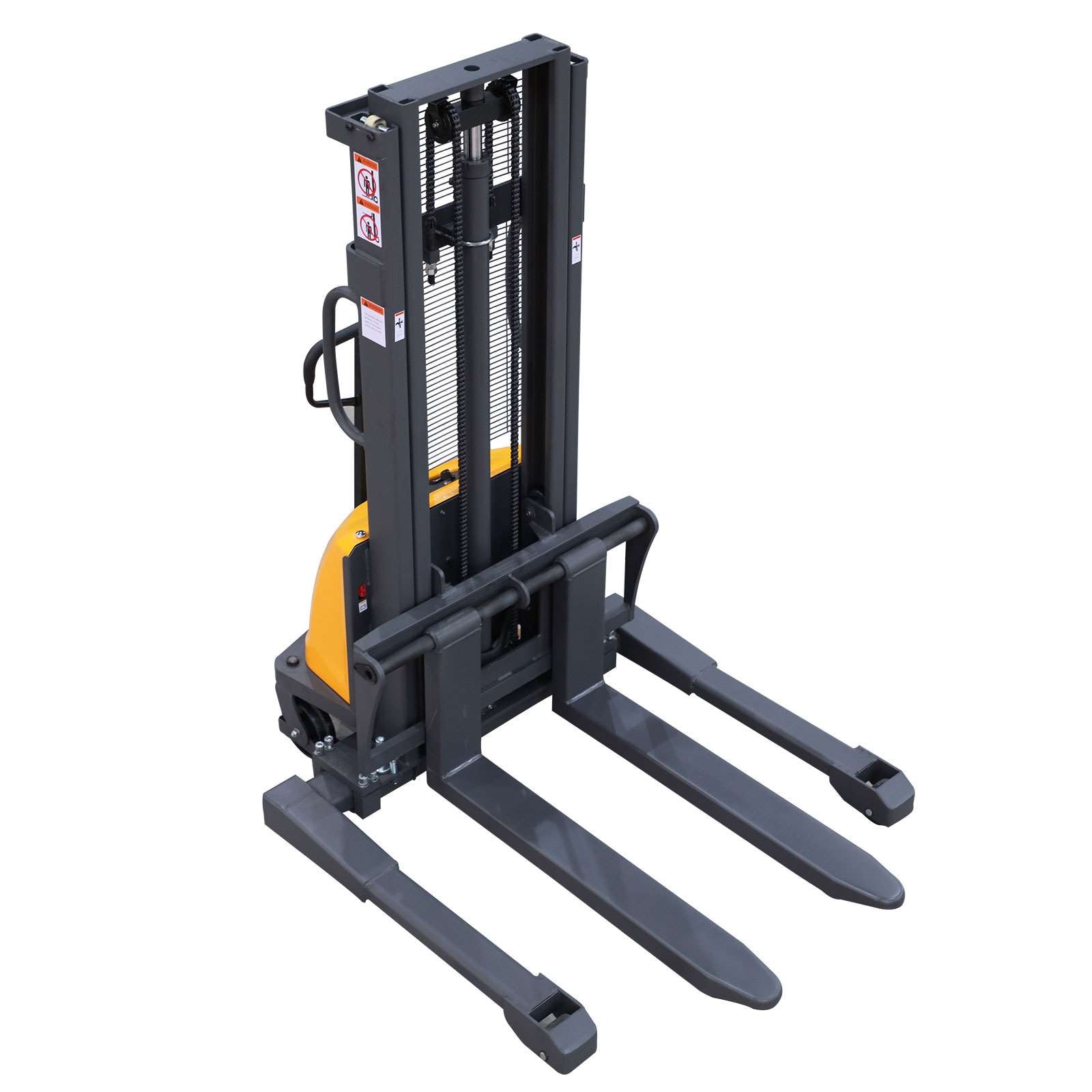 Semi-Electric Straddle Stacker| 3300 lb| 98"-118" Lifting Height| Adjustable Forks