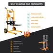 √ Adjustable forks (5.6"–19.9") for small pallets, crates, bins, and irregular loads.