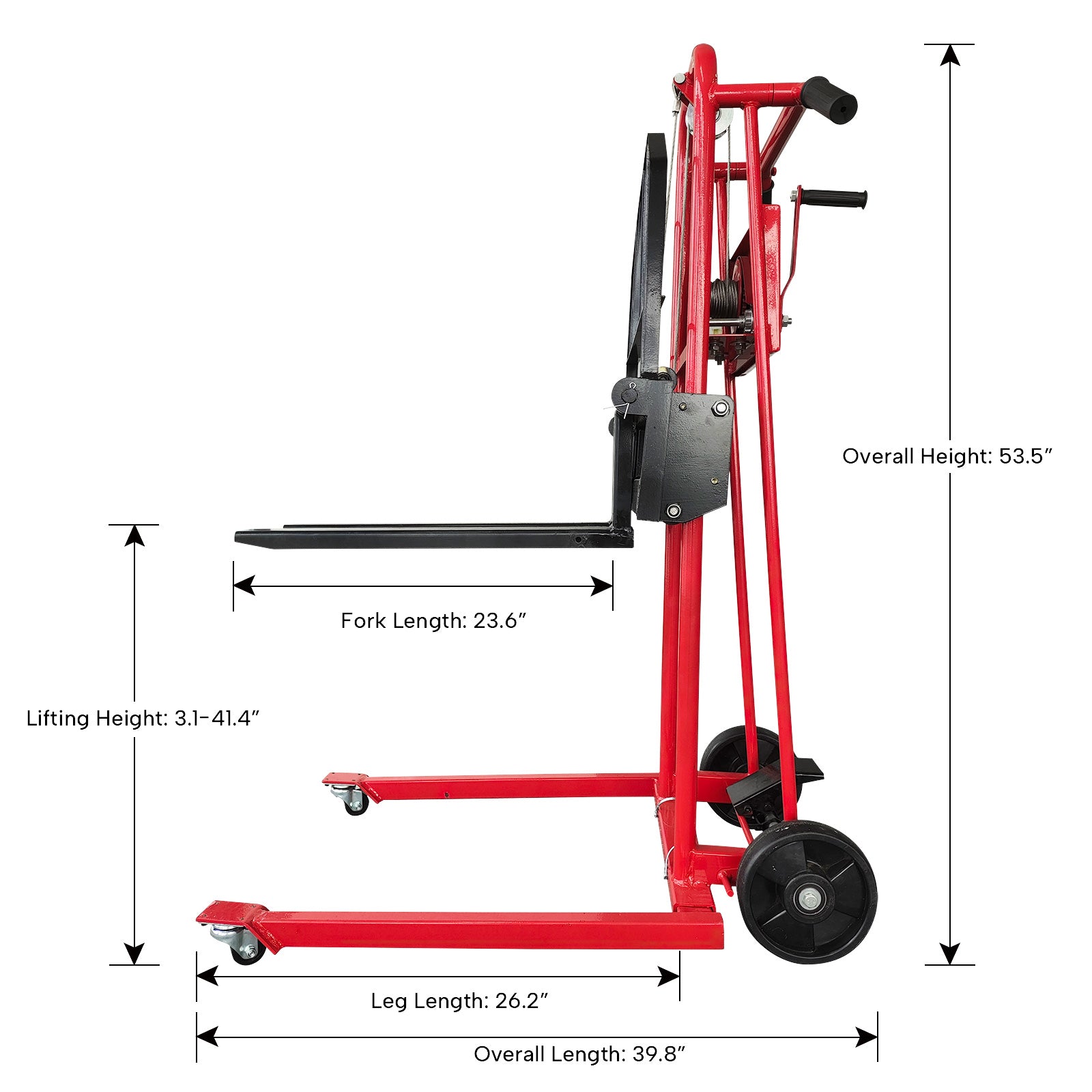 Mini Hydraulic Stacker Truck| 500 lb| 41.4" Lifting Height| Fixed Legs| Apollolift A-7006