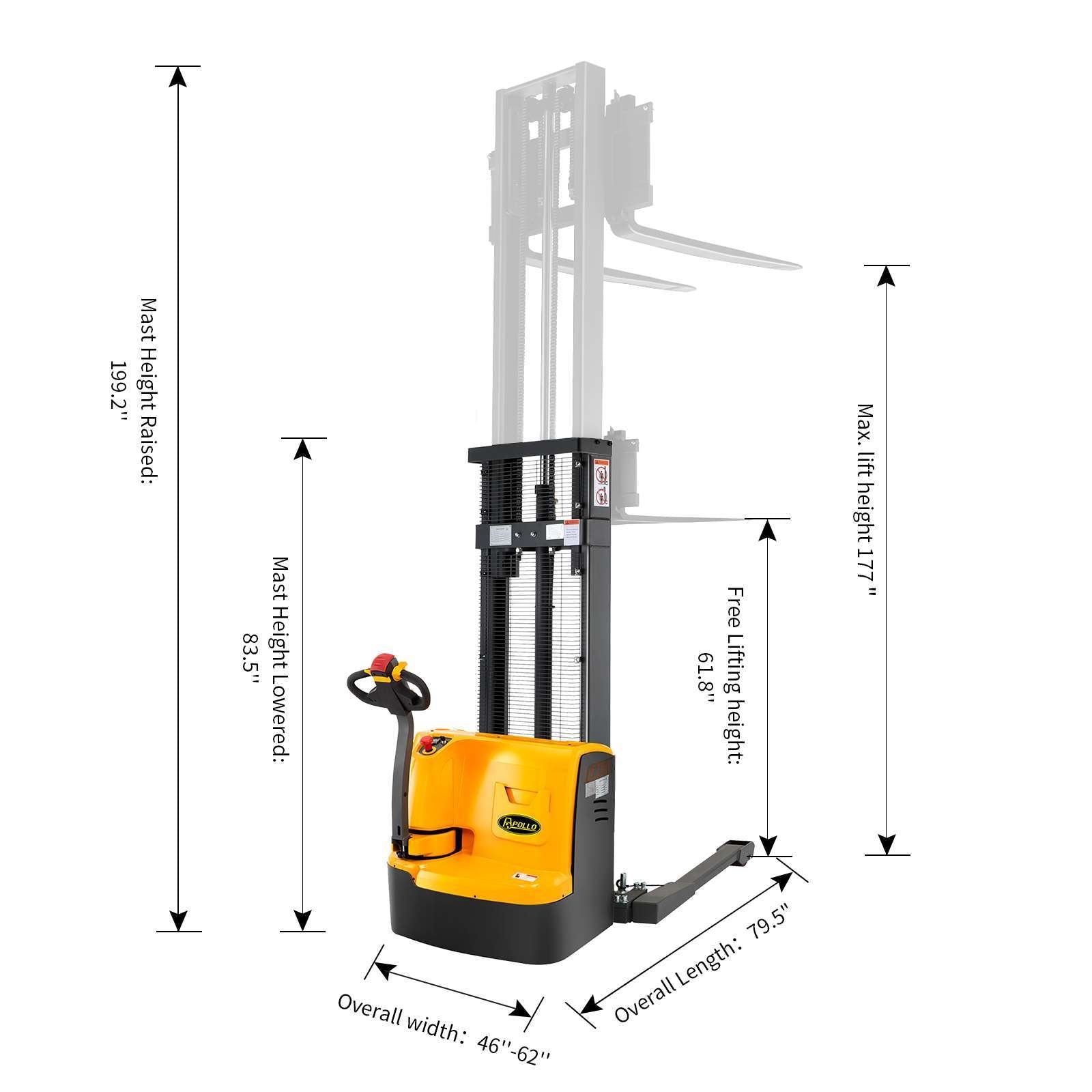 Electric Walkie Straddle Stacker| 3300 lb| 177"-220" Lifting Height| 24V/200AH